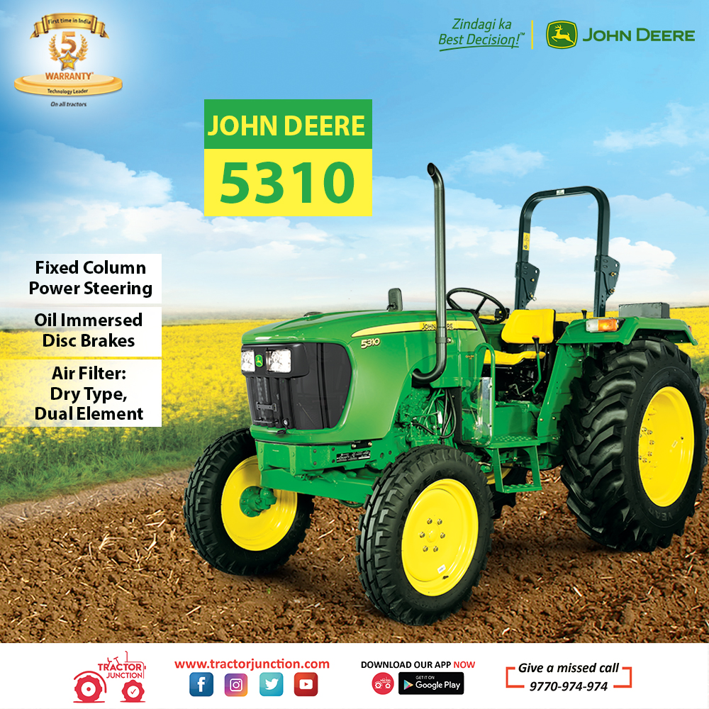Tractor Junction Su Twitter John Deere 5310 Has Got 9 Forward 3 Reverse Gear Box 55 Hp Engine With 2000 Kg Lifting Capacity To Know More Click Https T Co Rg80lsbybl Tractorjunction Tractorloan Price - John deere 5310 tractor is ₹ 10,63,000.